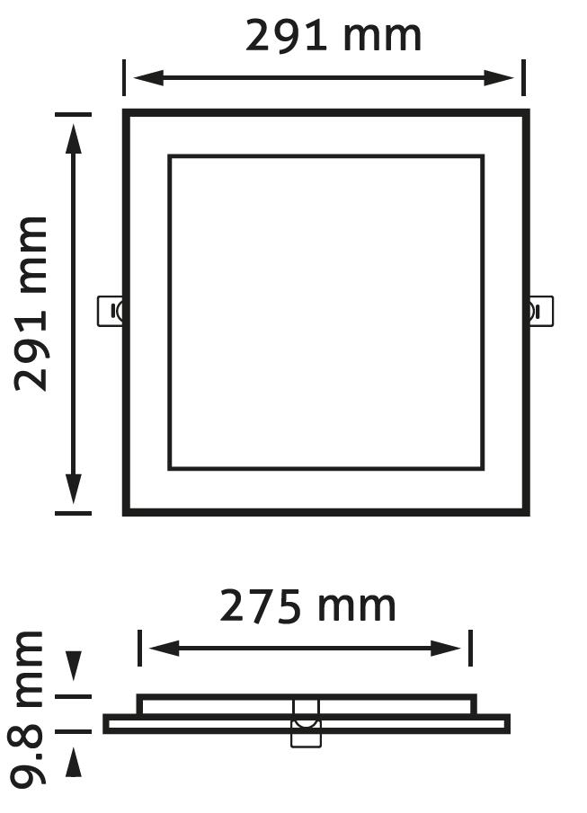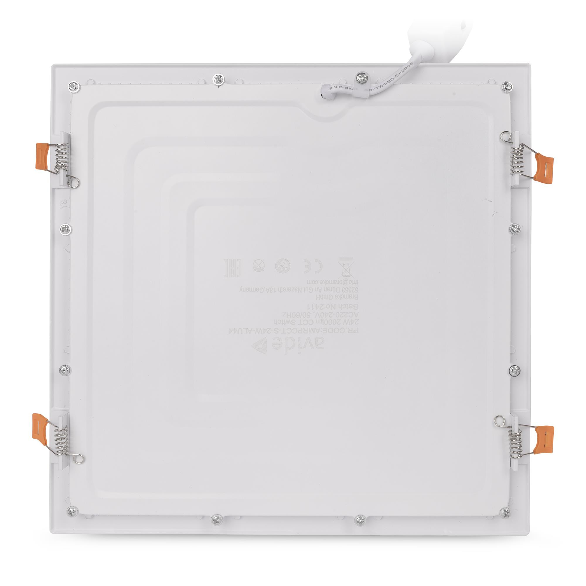 LED Beépíthető Négyzetes Mennyezeti Lámpa 24W, CCT kapcsolóval, ALU, IP44 Front