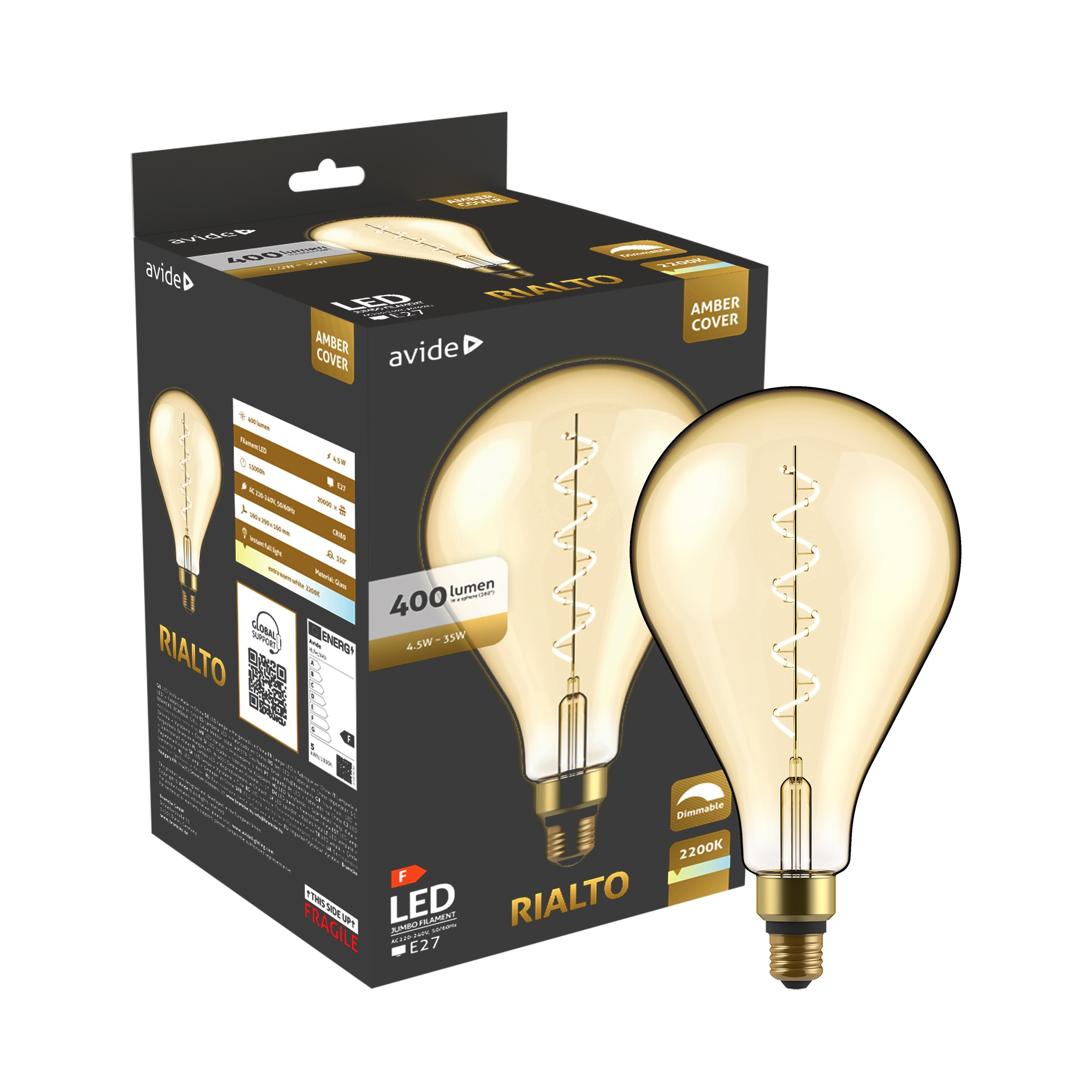 LED Jumbo Filament Rialto Amber 4.5W E27 2200K Fényerőszabályzós